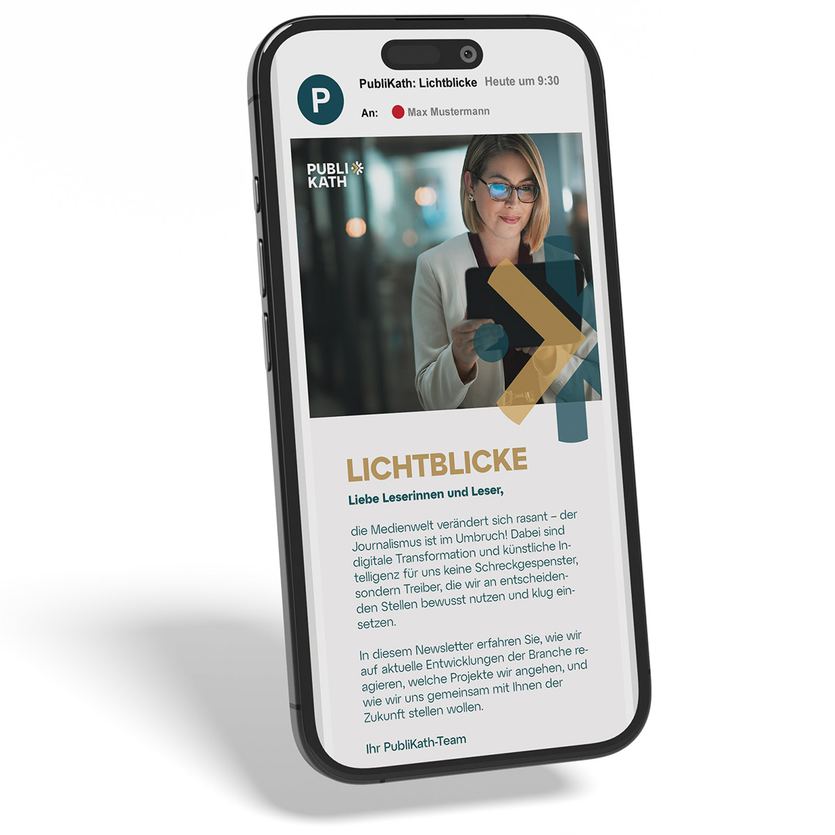 Unter dem Dach der PubliKath GmbH laufen Informationen aus Politik, Gesellschaft, Glaubenswelt und Medienbranche zusammen. In den verschiedenen Redaktionen arbeiten professionelle Teams nach journalistischen Standards: Sie bereiten Informationen für unterschiedliche Ausspielkanäle und Zielgruppen auf - relevante Inhalte, gut recherchiert und aus christlicher Perspektive eingeordnet. Unsere Kunden sind Redakteurinnen und Redakteure in säkularen und kirchlichen Medien, Institutionen wie zum Beispiel politische Gremien, aber auch kulturell und kirchlich interessierte Laien.